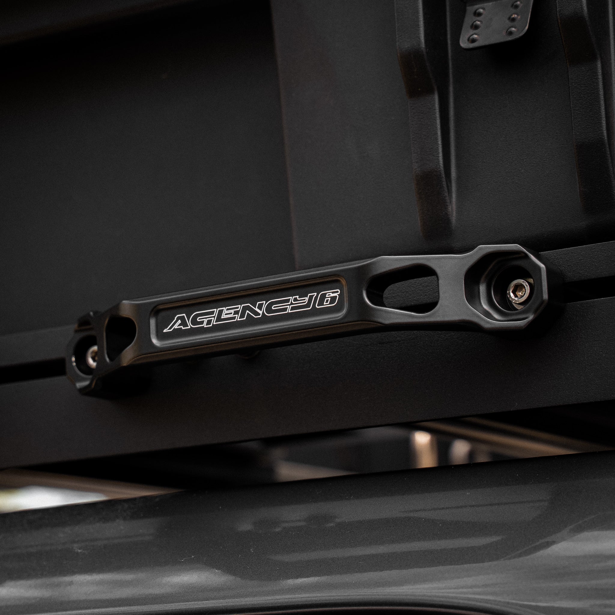 Agency 6 billet grab handles mount easily to a variety of places to make accessing your roof rack or getting in and out less treacherous. Billet aluminum will last a lifetime and the durable powdercoat can bake in the sun or chill in the snow without discoloring.